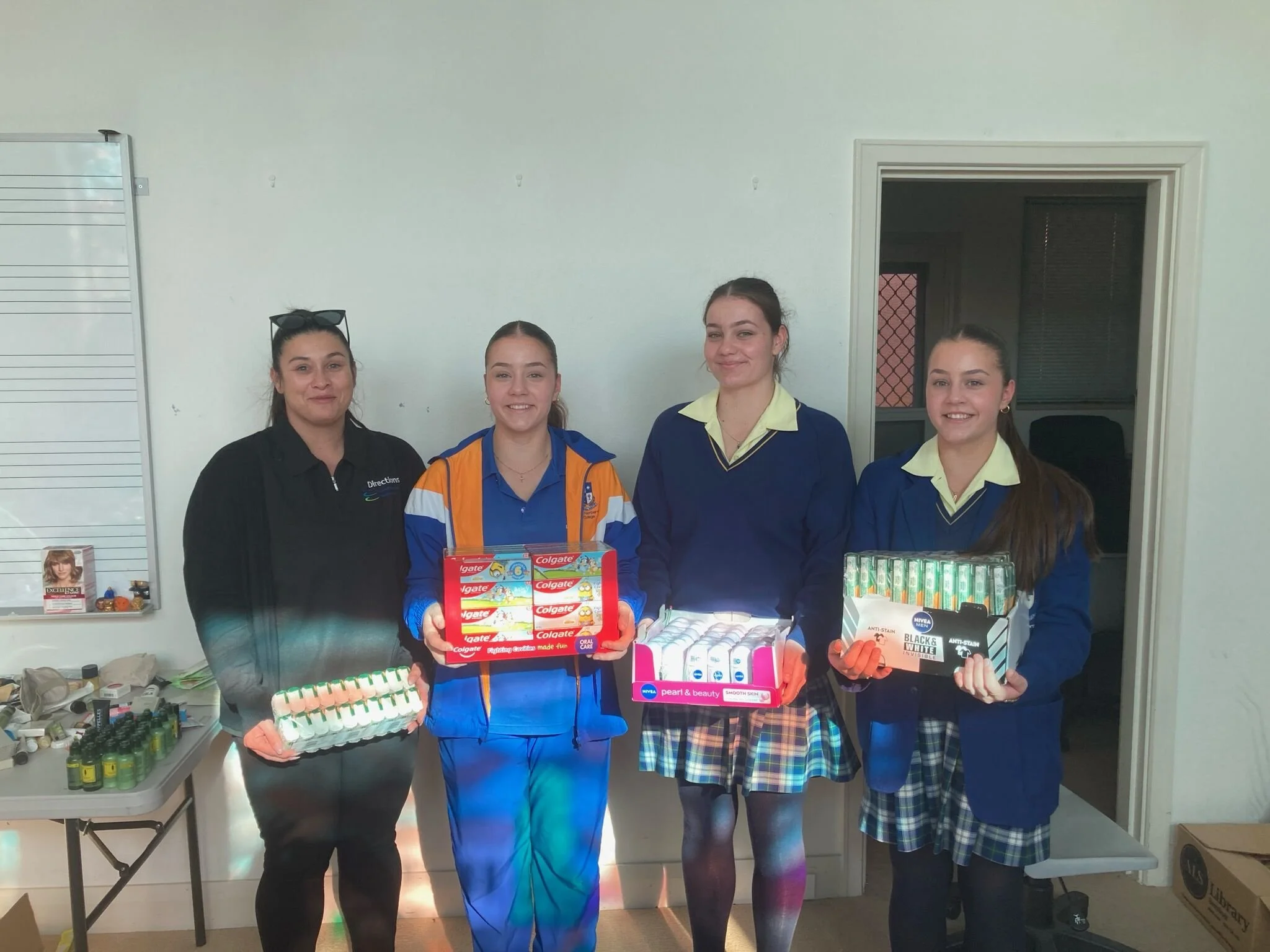 To assist them in their Immersion, Directions donated a quantity of goods including toiletries and personal hygiene products and thongs.